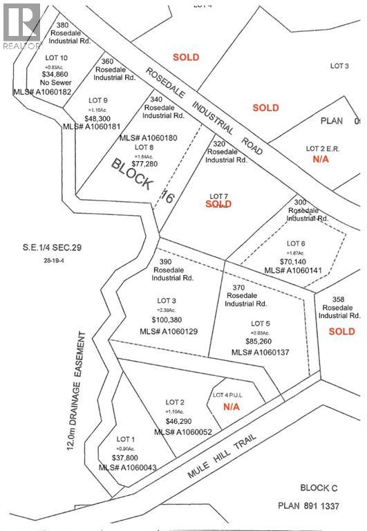 Located in the community of Rosedale, approximately 10 km from the intersection of Highway 9 & 10 and approximately 6 km from Drumheller city center. Lot 8 is 1.84 Acres in Subdivision that has already seen development. Area subject to an easement by the Town of Drumheller. Lot will have water, electricity, and natural gas servicing to the property line. Direct connection to sanitary sewer from the property line is available. If you combine this lot with others that total over 2 acres, you may be eligible for a 10% discount. Ask your agent about tax incentives. ***Residential uses not allowed on this land*** Legal Description: Lot 8 Block 16 Plan 0614150 Roll: 19060802 | 2023 taxes: $0 | Lot size: 1.840 Acres | Land Use / Zoning: ED | Title number: 061 478 257 +6 LINC Number: 0032 045 917 | non financial encumbrances: 811 117 857 23/06/1981 UTILITY RIGHT OF WAY GRANTEE – ICG UTILITIES (PLAINS-WESTERN) LTD. 941 151 458 09/06/1994 CAVEAT RE : RIGHT OF WAY AGREEMENT 061 478 259 17/11/2006 EASEMENT. Buyer must fill out a development permit application sheet as part of the offer outlining what they will build, who their contractor is, and outline the timeline that starts substantial construction within 8 months and completes construction with 24 months. Offers must be left open for 3 weeks from the date submitted. (id:7303)