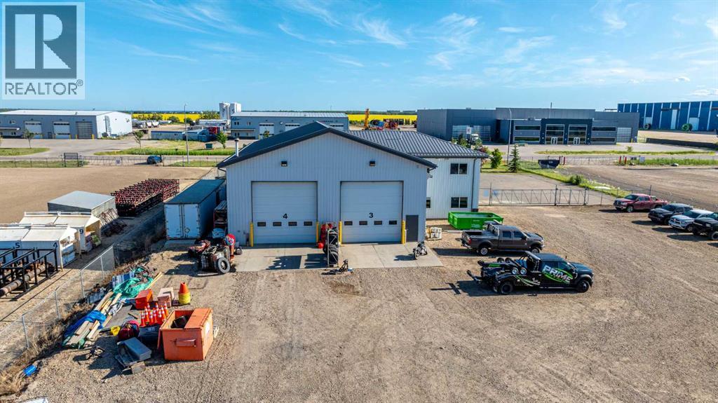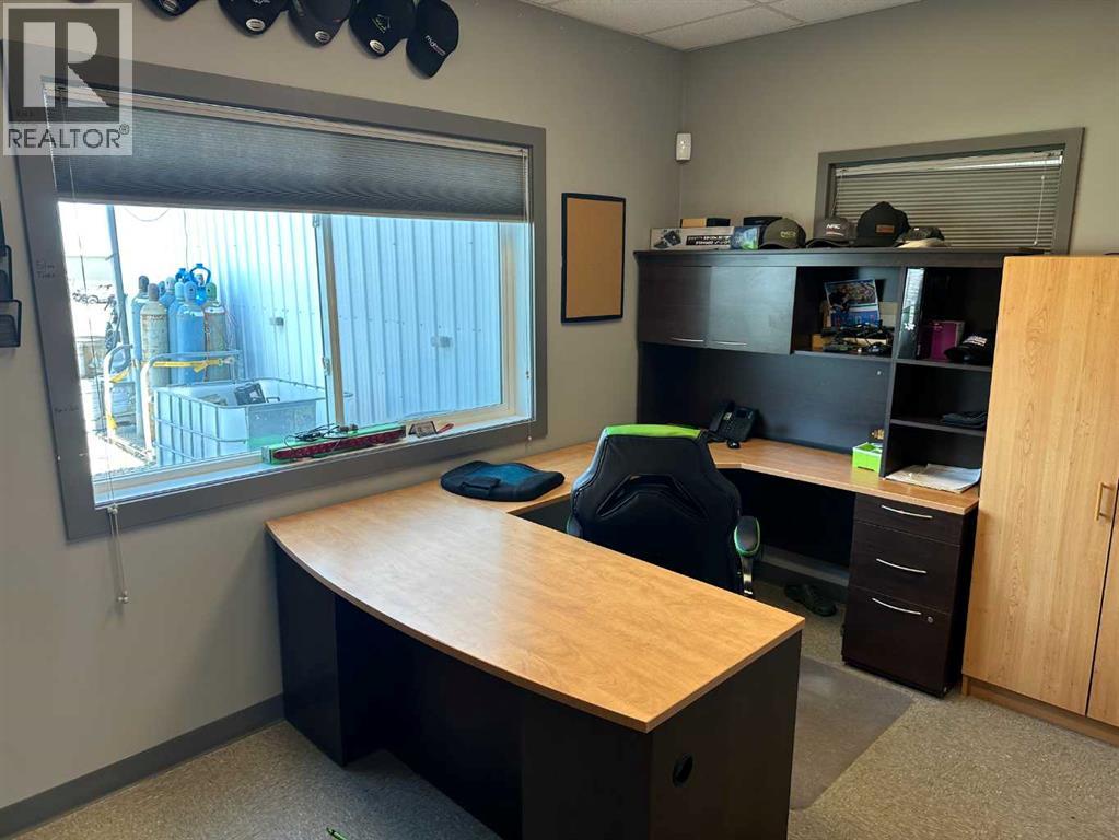 This 5,800-square-foot building is located on a fully fenced and graveled 2.00-acre yard, and offers a 50′ by 80′ shop space with two pull-thru bays and four 16′ by 16′ overhead doors. Ideal for any company needing ample room without breaking the bank, the building features asphalt parking at the front and a generous yard with ample turning radius for equipment at the rear. The office area includes a reception, three main floor offices, three upstairs offices, a washroom on both floors, and a lunch area. Contact your Commercial Realtor® today for a viewing. (id:7303)