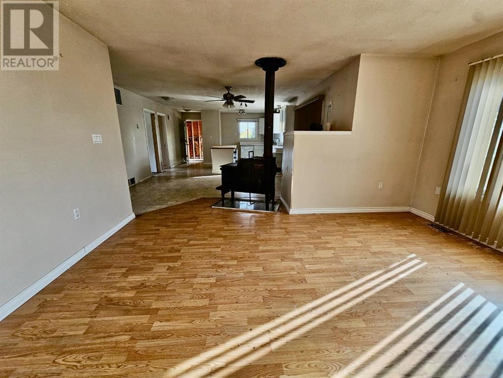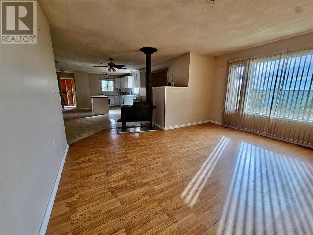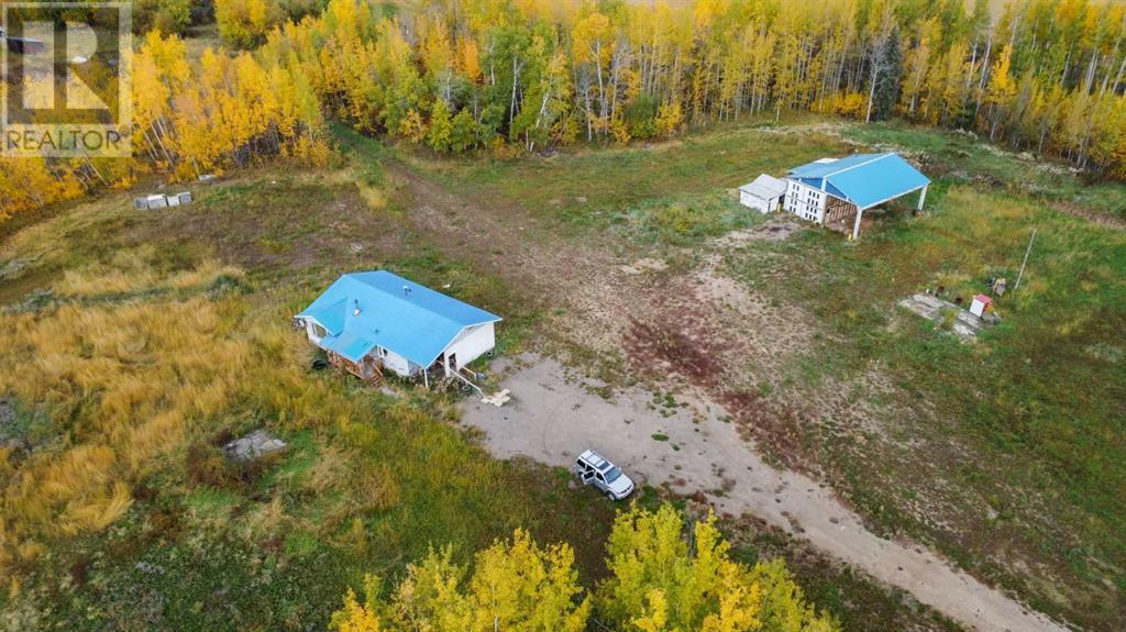 Basic tin-roof bungalow plus a shop on 22 acres features two bedrooms, laundry room with kitchen open to living room area anchored by a wood fireplace for cozy heat. Shop’s enclosed area about 18′ X 42′ with about 14′ high door (with overhang 36′ X 42′ overall). Balanced mix of trees and open space to suit any rural lifestyle. Dugout for water and diesel oil furnace. Old drilled well on site too. 18 km south of Valleyview set back from highway 43. Great privacy yet close enough to town for conveniences. (id:7303)