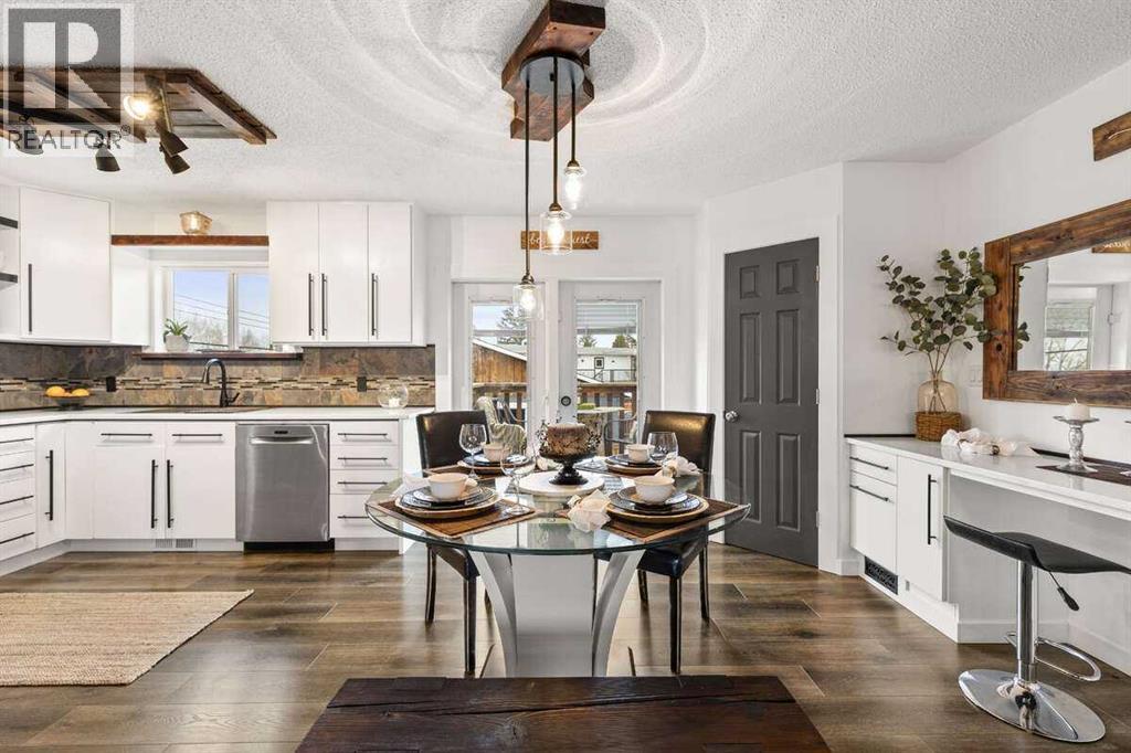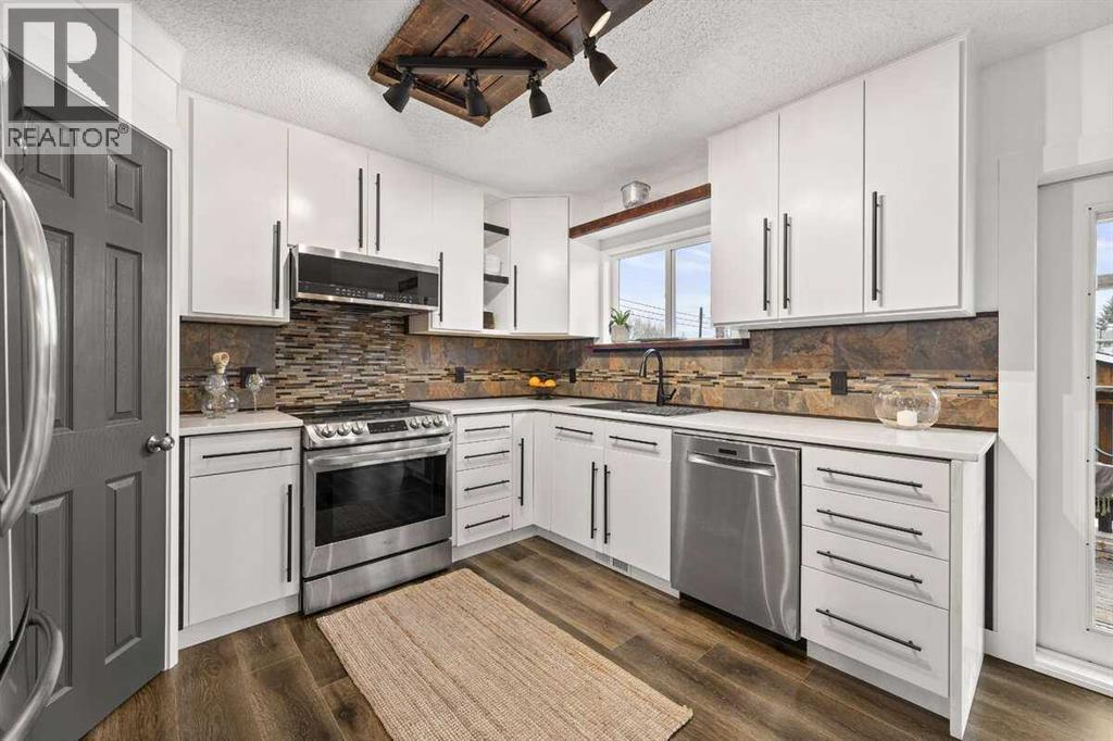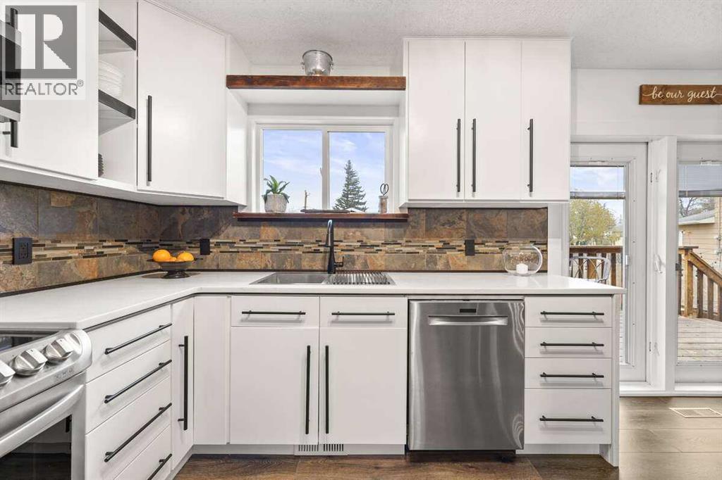 For more information, please click the “More Information” button. We welcome you to ‘Rustic Elegance’ in Three Hills, AB. A town with a quaint neighborhood feel, vibrant community and ample amenities. Just six blocks from Main Street, and along the nostalgic CP railway, this home is in a league of its own with its custom craftsmanship. As a near full remodel, this turn-key, one of a kind property, is a must see! Nestled in a quiet cul-de-sac in the SW end of town, boasting views of the western prairie sunsets, you will enjoy nearby bike/walking paths, playgrounds, tennis/pickle ball courts, and a lit hockey/roller rink. This noteworthy 4*- 5 bedroom (*Jack and Jill bedrooms can be one room), 2.5 bath, bi-level floor plan, features remarkable custom woodwork throughout. The large covered front porch greets you with massive Douglas fir beams and pillars that are carried with continuity right through the home. Inside, you’ll find an open-concept living, dining, and kitchen area that hugs you with warmth. The kitchen is equipped with stainless appliances, brand new quartz countertops, two pantries, updated cabinets and many custom features. Each bedroom contains a beauty of its own with the custom design features and furnishings. This home has 2 master bedroom options, Jack and Jill bedrooms, and a lower fifth bedroom. The property includes a one car garage with workshop and storage space, fully fenced yard, and is beautifully landscaped with perennials, fruit trees, and garden boxes. Some of the updates include windows, asphalt shingles, flooring, cabinets, paint, gorgeous custom lighting features, custom woodwork throughout, landscaping, decks, new hot water heater, and so much more. There is not another home in town like it! (id:7303)