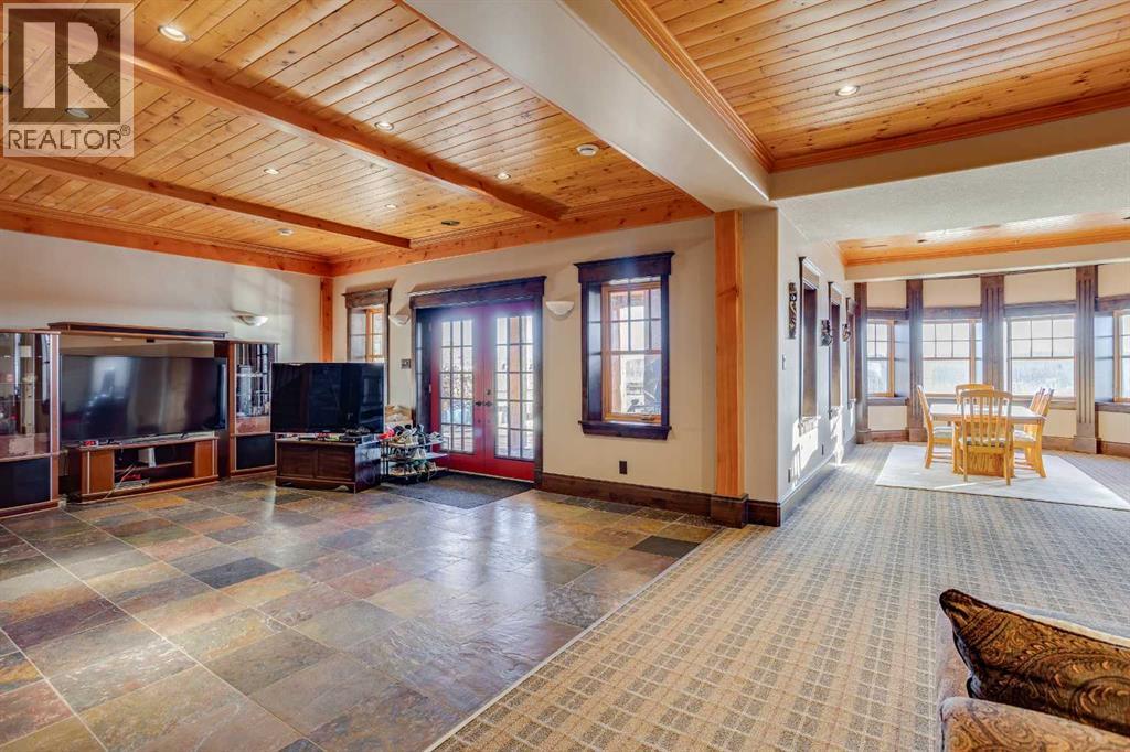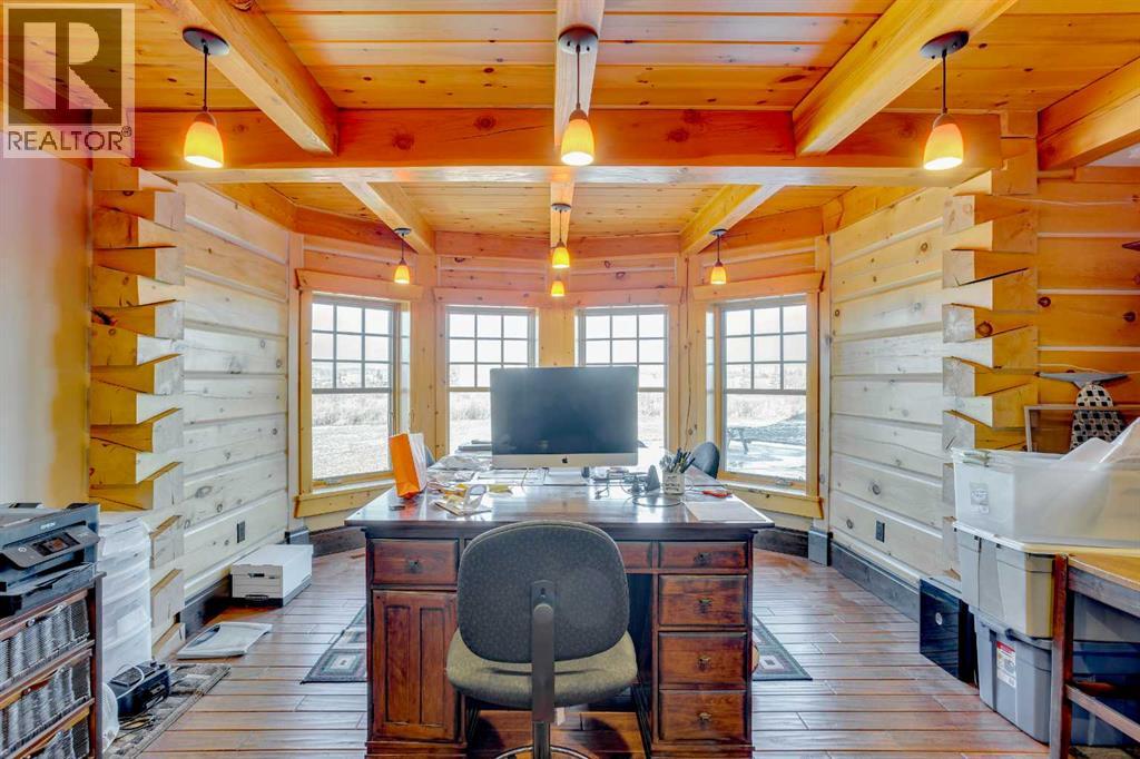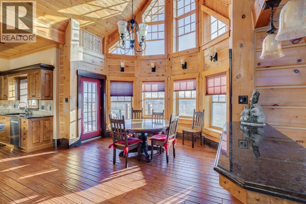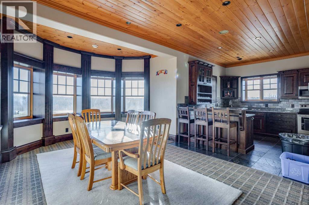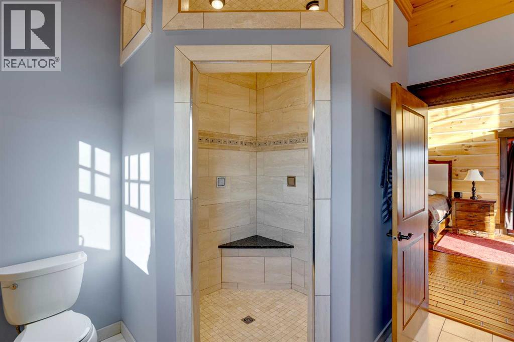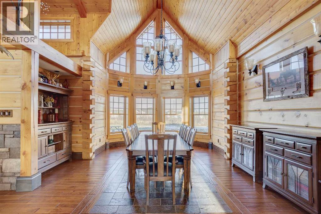 4.49 Acres! 40’10” x 43’ Shop! Welcome to 173 Sommer Way. This custom built 8424 sq ft(total living space), 8 Bed, 5 bath, 1 & 1/2 storey luxury log home is nestled in the private & serene neighbourhood of Saprae Creek Estates. This extraordinary build has a Canmore inspired mountain design that offers a perfect blend of natural elements with acreage living. The attention to detail on this iconic build is made apparent the moment you enter. From the vaulted pine cathedral ceilings, douglas fir beams, custom spiral staircase & the floor-to-ceiling stone fireplace this home has a warm & rustic charm. The main level boasts engineered hardwood floors, oversized low-e windows, cathedral ceilings, stone finishings, 4 beds & 3 baths. The bright & open country style kitchen has commercial grade appliances, 2 pantries, custom cabinetry, centre island w/ granite countertops, 2 sinks & beautiful dining area. The formal dining room is an incredible space to entertain guests or enjoy large gatherings. Relax & unwind in the bright living room sitting off the kitchen, featuring floor to ceiling dual functioning (gas/wood) stone fireplace w/ exposed wood mantle. The primary bedroom features vaulted ceilings, floor to ceiling windows & access to the back deck which overlooks the tree-line and expansive backyard. A walk-in closet features custom built-in shelving. The spa-like ensuite has ceramic tile floors, dual sinks, granite countertops, steam shower with rain shower head, corner bench and tile surround. The spacious 3 additional bedrooms have custom closets & high ceilings. Head up the spiral staircase to the loft overlooking the main living space. Upstairs you will find another bedroom & 4 piece bath. The large walk out basement features a full kitchen with granite countertops, SS appliances, theatre room, 3 bed and 1 full bath. The lower level has an incredible, oversized 19’4” x 37’9” storage area. The stone fireplace centrepiece from the main level extends down into th e basement & adds a comforting ambience. Outside you will find a spacious covered porch with a stamped concrete base w/ a path that extends out to the backyard fire pit area. This lot boasts 4.49 acres, a beautiful landscaped yard and an extensive irrigation system. Take in the panoramic views from the oversized back deck that has recently been upgraded with glass railing. Plenty of room for your toys! There is an attached 28’ 10” x 35’8” triple car garage with in-floor heat. Another detached, oversized, triple door 43’ x 40’10” shop has two 10’ overhead doors, with a third, middle 14’ overhead door. It has in-floor heating, 240 amp power, a 21’ ceiling at the middle peak and is roughed in for a bathroom. This 2008 custom build cost over $4.5 million. Over $500k spent on exposed aggregate driveway & detached garage foundation. This home has been upgraded with a new domestic heating system, water boiler in 2020, new furnace motors in 2018/2019, A/C, metal roof and ICF foundation. SPEC SHEET AVAILABLE!– (id:7303)
