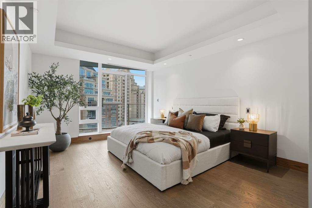 **NEW PRICE** PRESTIGIOUS | PRIVATE ELEVATOR | HIGH FLOOR | CITY SKYLINE & RIVER VIEWS | 2 BEDROOMS + DEN | TWO TITLE PARKING STALLS! WELCOME TO THE CONCORD – Calgary’s most prestigious riverfront residence, an architectural icon that defines luxury living! Experience this unparalleled luxury large unit living at The Concord, where a private elevator transports you directly into your exquisite residence. This stunning home is designed with the finest finishes and features, including a German-engineered Poggenpohl kitchen, Miele appliances. The thoughtfully crafted interior boasts engineered hardwood flooring, Bianco Carrara marble accents, rich walnut detailing, a full-height Bianco Statuario marble encased fireplace, and floor-to-ceiling windows showcasing breathtaking Bow River views. Enjoy year-round comfort with heated tile flooring, a horizontal four-pipe fan coil system for heating and cooling, and a BRIGHT GLASS DOOR OPEN DEN perfect for a home office. The spacious primary suite is a private retreat with a custom walk-in closet, and a 5-piece spa-inspired ensuite, complete with dual sinks, a deep soaker air-jet tub, a separate shower and heated marble floors. A patio door leads to a private balcony, offering a serene escape with stunning city and Bow River views. The second bedroom also enjoys balcony access and its own floor-to-ceiling marble bathroom with heated floors. Additional features include an in-suite full-size washer and dryer, two titled side by side parking stalls, and a titled storage room. World-Class Building Amenities include: 24-hour Concierge & Security services | 6 high-speed Elevators | Elegant Social Lounge with a Bar, full kitchen for your private events | State-of-art Fitness Centre | Touch-less automatic car wash | Ample guest parking | Stunning outdoor water garden and pond (transforms into a winter Skating rink) | Outdoor kitchen with BBQ and 2 fire-pits, perfect for entertaining. Exciting future amenities (Phase II – L aunching in May, 2025) include: Resort-style swimming pool and a hi-tech golf simulator. With unparalleled elegance, world-class amenities, and the best value in The Concord. This offering is truly one-of-a-kind and best value in Calgary RIVER FRONT luxurious living. CALL TODAY TO SCHEDULE YOUR PRIVATE VIEWING! (id:7303)